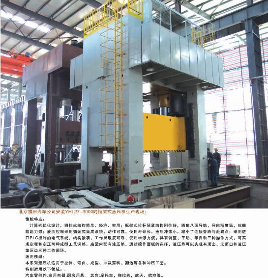 公司能夠?yàn)槭袌鎏峁?2大類500余個品種的標(biāo)準(zhǔn)液壓機(jī)和非標(biāo)專用、精密伺服液壓機(jī)。產(chǎn)品廣泛應(yīng)用于汽車、航天、粉末冶金、船舶、輕工、建筑、電子、家用電器等行業(yè),并代表著我國通用液壓機(jī)的發(fā)展水平。公司生產(chǎn)、設(shè)計、開發(fā)的液壓機(jī)產(chǎn)品完全能夠滿足國內(nèi)不同用戶多層次的需要。